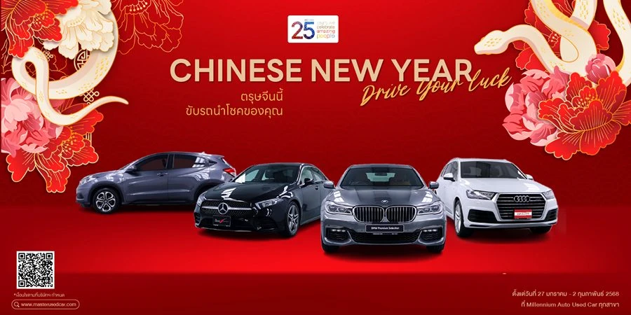 มาสเตอร์ เซอร์ทิฟายด์ ยูสคาร์ ศูนย์รวมรถยนต์มือสองครบวงจร ภายใต้ บริษัท มิลเลนเนียม กรุ๊ป คอร์ปอเรชั่น (เอเชีย) จำกัด (มหาชน) จัดแคมเปญ Chinese New Year, Drive Your Luck ต้อนรับเทศกาลตรุษจีน ยกทัพยนตรกรรมระดับพรีเมียม ไมล์น้อย ราคาดี การันตีคุณภาพ มาให้เลือกสรรแบบจุใจ ให้ลูกค้าได้ เฮง เฮง เฮง ตลอดทั้งปี ระหว่างวันที่ 27 มกราคม ถึง 2 กุมภาพันธ์ 2568 ที่โชว์รูม มาสเตอร์ เซอร์ทิฟายด์ ยูสคาร์, บีเอ็มดับเบิลยู เซอร์ทิฟายด์ ยูสคาร์ บาย มิลเลนเนียม ออโต้ และ ซัมมิท ฮอนด้า ยูสคาร์ ทุกสาขา