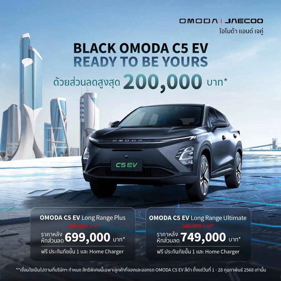 OMODA C5 EV รถไฟฟ้าที่ก้าวข้ามขีดจำกัดสู่โลกอนาคต สะท้อนความคิดสร้างสรรค์ที่ไร้ขอบเขต ผสมผสานการออกแบบที่ทันสมัยและเทคโนโลยีแห่งอนาคตได้อย่างลงตัว ยกระดับความสะดวกสบายด้วยดีไซน์ล้ำสมัย พร้อมมอบประสบการณ์การขับขี่ที่เหนือชั้นกับห้องโดยสารที่กว้างขวาง สะดวกสบาย มิติใหม่ของความสมบูรณ์แบบที่มาพร้อมกับเทคโนโลยีที่ทันสมัย ผสมผสานวัสดุระดับพรีเมียม ซึ่งมาพร้อมกับเทคโนโลยีระดับโลกและระบบความปลอดภัยเหนือชั้น ขับขี่มั่นใจไปกับทุกการเดินทาง พร้อมโปรโมชั่นและข้อเสนอสุดพิเศษที่ดีที่สุดของปี