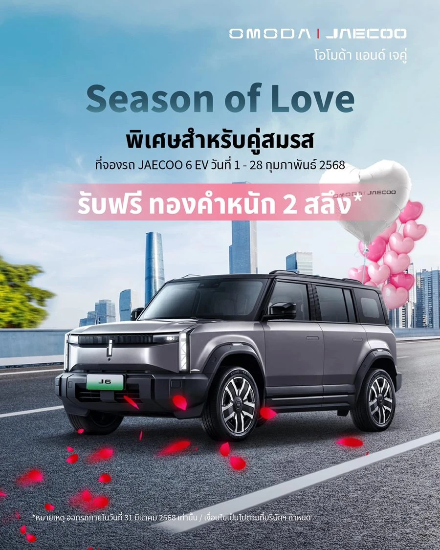 ในเดือนแห่งความรักนี้ JAECOO 6 EV (หรือ iCAR 03 ในประเทศจีน) นำเสนอ ข้อเสนอพิเศษแบบจัดเต็ม ภายใน เดือนกุมภาพันธ์ 2568