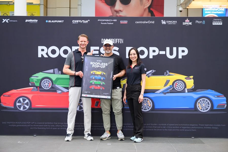 คาบริโอเลต (Cabriolet), (ทาร์กา) Targa, สไปเดอร์ (Spyder) และ สปีดสเตอร์ (Speedster) คือชื่อที่สะท้อนความคลาสสิกของรถสปอร์ตเปิดประทุนจากปอร์เช่ (Porsche) แต่ละรุ่นได้รับการออกแบบให้มอบประสบการณ์การขับขี่ที่เร้าใจ เต็มไปด้วยอารมณ์และความรู้สึก เพื่อเฉลิมฉลองเสน่ห์เฉพาะตัวของรถ ปอร์เช่ (Porsche) เปิดประทุน ปอร์เช่ ประเทศไทย จึงร่วมกับ Das Treffen ซึ่งเป็นผู้จัดงานการรวมตัวของแฟนๆ ปอร์เช่ (Porsche) ที่ใหญ่ที่สุดในเอเชียตะวันออกเฉียงใต้ จัดงาน Das Treffen: Roofless ป๊อปอัป ณ เซ็นทรัลเวิลด์ กรุงเทพฯ นำเสนอที่สุดแห่งเสน่ห์ของยนตรกรรมเปิดประทุน พร้อมมอบประสบการณ์พิเศษให้กับผู้หลงใหลในความงามของปอร์เช่