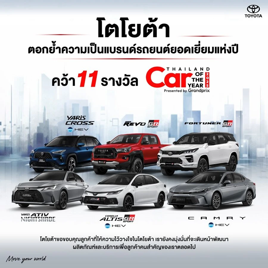 โตโยต้ารู้สึกภาคภูมิใจ และขอขอบคุณคณะผู้จัดงาน การได้รับรางวัลครั้งนี้จะเป็นแรงผลักดันในการพัฒนาและผลิตยนตรกรรมที่ดียิ่งกว่าหรือ “Ever-Better Cars” ที่ตอบโจทย์ทุกการใช้งานของลูกค้า ภายใต้หลักการ QDR ซึ่งหมายถึง “Quality : คุณภาพ” / “Durability : ความทนทาน” และ “Reliability : ความไว้ใจได้ในการใช้งาน” ที่เรายึดถือมาโดยตลอด เพื่อรักษาความเป็นรถยนต์ยอดนิยมอันดับ 1 ของคนไทยตลอดไป