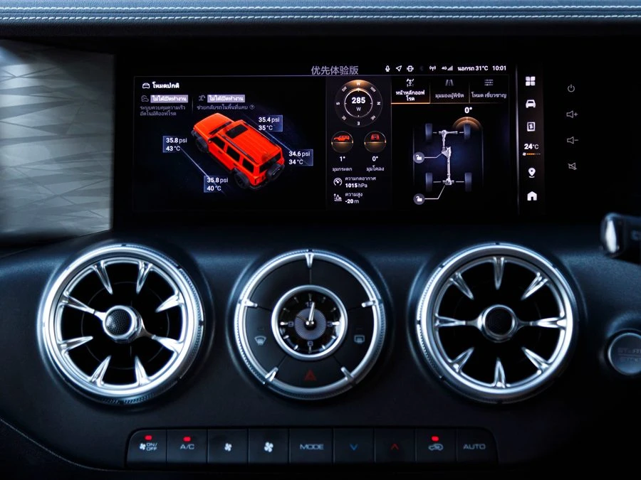 NEW GWM TANK 300 DIESEL รุ่น 2.4T ULTRA ทั้ง 2 รุ่น มาพร้อมระบบปรับอากาศอัตโนมัติด้านหน้าแยกอิสระซ้าย-ขวา พร้อมกับระบบชาร์จโทรศัพท์แบบไร้สาย ระบบนำทาง ระบบสั่งการด้วยเสียง (Voice Command) ระบบตรวจจับ PM 2.5 Ionizer และที่กรองอากาศชนิด N95 พร้อมช่องต่อ USB สำหรับผู้โดยสารด้านหน้าและหลัง และช่องต่อ USB สำหรับกล้องบันทึกภาพ พร้อมช่องจ่ายไฟสำรอง (12V) และช่องจ่ายไฟสำรอง (220V)