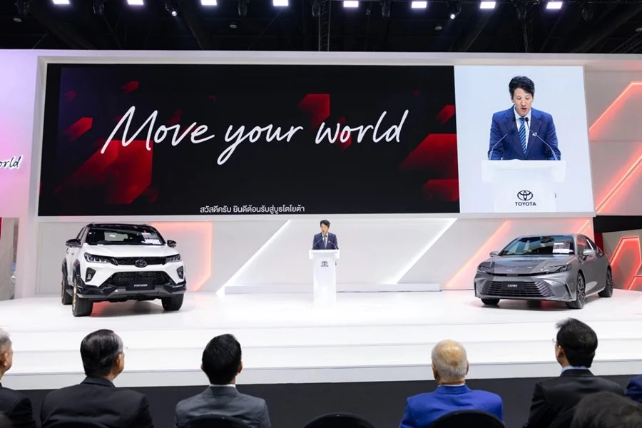 มร.โนริอากิ ยามาชิตะ กล่าวเปิดบูธว่า “ปีนี้ เราจัดแสดงภายใต้คอนเซ็ปต์ MOVE YOUR WORLD, MOVE ALL OPPORTUNITIES ขับเคลื่อนโลกของคุณ ขับเคลื่อนทุกโอกาสให้เป็นจริง โดยคอนเซ็ปต์ Move Your World เกิดขึ้นเพื่อสร้างแรงบันดาลใจในการเปลี่ยนแปลงที่ดีขึ้น และสร้างการเชื่อมโยงที่ยั่งยืน เหนือการขับเคลื่อนทั่วไป วิสัยทัศน์นี้คือ คำมั่นสัญญาของโตโยต้า ที่จะสร้างอนาคตที่ทุกคนสามารถก้าวไปข้างหน้าได้พร้อมๆกัน โตโยต้ามุ่งมั่นที่จะมอบโซลูชั่นแห่งการขับเคลื่อนที่ดียิ่งขึ้น และมอบความไว้วางใจ เพื่อนำไปสู่อนาคตที่ดีกว่าให้กับคนไทยทุกคน