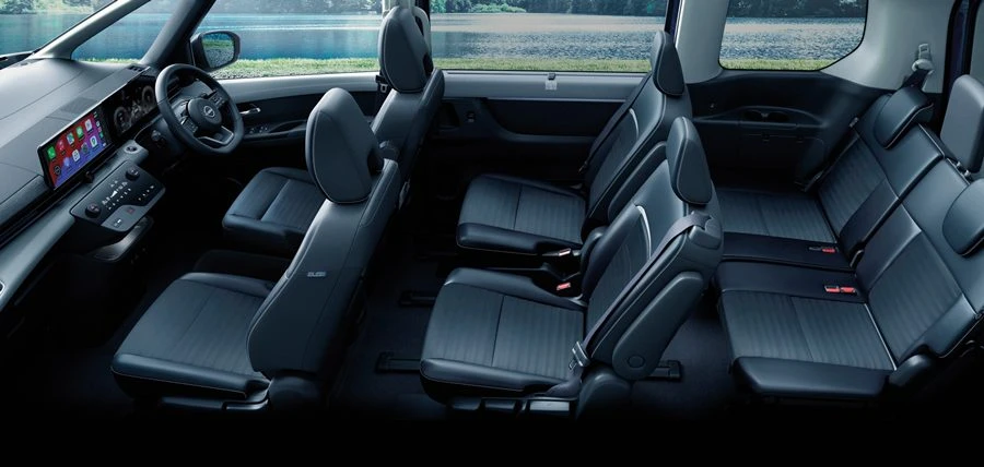 เบาะนั่งหุ้มหนังสีดำทั้ง 3 แถวที่ใช้โครงสร้าง Zero Gravity นั่งสบายแม้เดินทางไกล เบาะแถว 2 แบบ Captain Seat สามารถปรับแยกได้อย่างอิสระ พร้อมโต๊ะอเนกประสงค์แบบพับได้ ส่วนเบาะแถว 3 สามารถปรับเอน และพับเก็บได้ ภายในยังเพิ่มความสะดวกสบายมากมาย อาทิ พื้นที่เก็บสัมภาระขนาดใหญ่พร้อมช่องเก็บของใต้พื้นที่ด้านหลัง ที่วางแก้วมากถึง 17 จุด ช่องชาร์จ USB-C ทุกแถวที่นั่ง รวมทั้งยังมีช่องชาร์จแบบ Type A ในที่นั่งแถวหน้า และรองรับการชาร์จแบบไร้สาย อีกทั้งระบบปรับอากาศอัตโนมัติ 3 โซน พร้อมระบบฟอกอากาศ Plasmacluster ที่ช่วยลดฝุ่น PM2.5 ภายในห้องโดยสารได้อีกด้วย