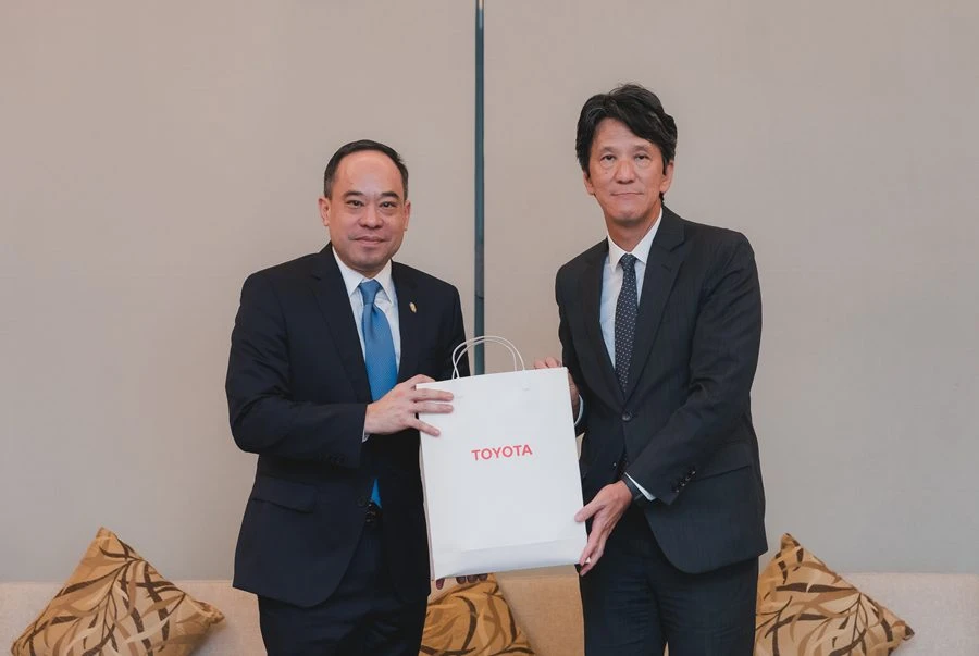 มร. โนริอากิ ยามาชิตะ กรรมการผู้จัดการใหญ่ บริษัท โตโยต้า มอเตอร์ ประเทศไทย จำกัด เข้าพบ นายกิตติพงศ์ กิตติขจร ผู้อำนวยการท่าอากาศยานสุวรรณภูมิ บริษัท ท่าอากาศยานไทย จำกัด (มหาชน) หรือ AOT เพื่อแสดงความขอบคุณ พร้อมทำการส่งมอบรถไฮบริดซีดาน ALL-NEW CAMRY จำนวน 50 คัน สำหรับมอบบริการเหนือระดับ ที่มาพร้อมความสะดวกสบาย มั่นใจ และปลอดภัย ตลอดการเดินทาง กับบริการรับ-ส่งผู้โดยสารที่ท่าอากาศยานสุวรรณภูมิ หรือ AOT Limousine เมื่อวันที่ 7 เมษายน 2568 ณ อาคารผู้โดยสาร สนามบินสุวรรณภูมิ