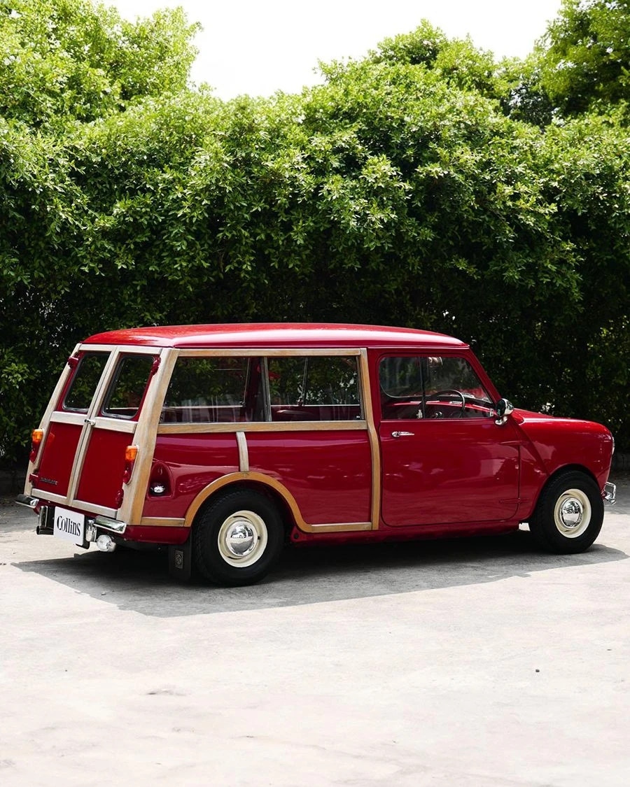 - Morris Mini Traveller รุ่นแรก โดดเด่นด้วยกรอบไม้อันเป็นเอกลักษณ์