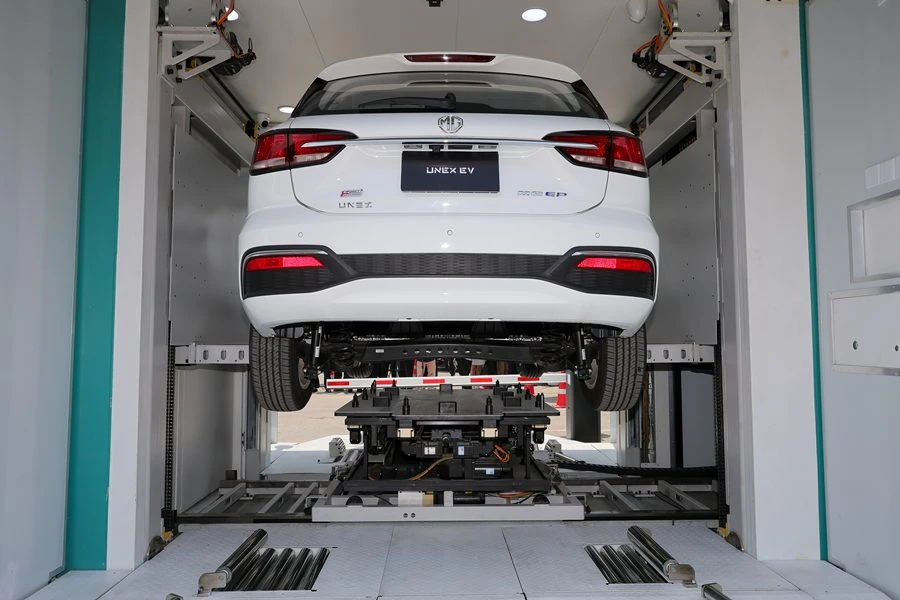 เทคโนโลยีการสลับแบตเตอรี่ (Battery Swapping Technology) เป็นอีกหนึ่งแนวทางการผลักดันยานยนต์ไฟฟ้า สู่การขนส่งสาธารณะ ซึ่งจะช่วยเสริมสร้างความแข็งแกร่งให้กับระบบนิเวศยานยนต์ไฟฟ้าและทำให้เกิดการใช้พลังงานสะอาดมากยิ่งขึ้นในกลุ่มธุรกิจ และอุตสาหกรรม ซึ่งเทคโนโลยีสลับแบตเตอรี่จะช่วยให้รถยนต์ไฟฟ้าสามารถกลับมาพร้อมใช้งานได้อย่างรวดเร็ว โดยใช้เวลาสลับแบตเตอรี่ที่สถานีเพียง 3 นาที เท่านั้น ขณะที่ระยะทางการขับขี่ยังคงเท่าเดิม โดย NEW MG EP PLUS วิ่งได้ระยะทางสูงสุด 380 กิโลเมตร และ NEW MG MAXUS 7 วิ่งได้ระยะทางสูงสุด 570 กิโลเมตร ตามมาตรฐาน NEDC อีกทั้งเทคโนโลยีการสลับแบตเตอรี่ยังช่วยเพิ่มความสะดวกในการใช้งาน ลดเวลาในการจอดชาร์จ แต่ยังคงให้สมรรถนะการขับขี่ดีเช่นเดิม