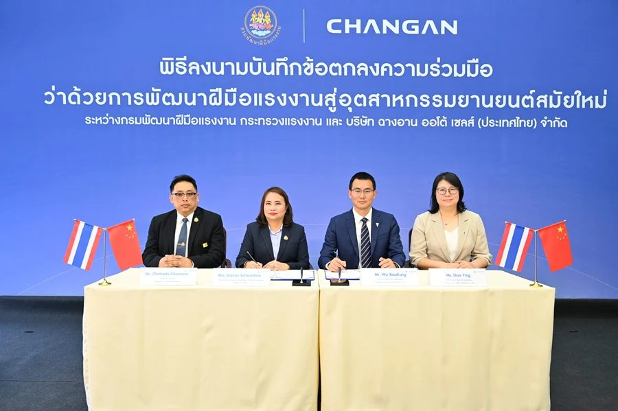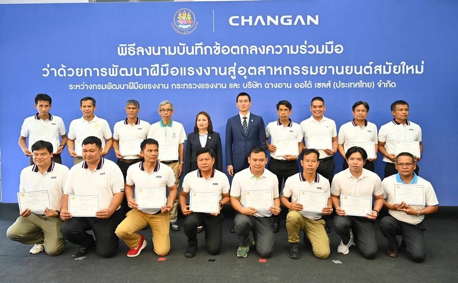 บริษัท ฉางอาน ออโต้ เซลส์ (ประเทศไทย) จำกัด ผู้นำนวัตกรรมยานยนต์พลังงานทางเลือกใหม่ภายใต้ CHANGAN Automobile กับ กรมพัฒนาฝีมือแรงงาน กระทรวงแรงงาน ร่วมลงนามบันทึกข้อตกลงความร่วมมือว่าด้วยการพัฒนาฝีมือแรงงานสู่อุตสาหกรรมยานยนต์สมัยใหม่ ระหว่าง