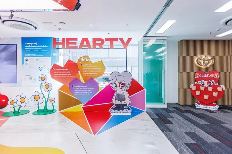 - หัวใจที่เปิดกว้าง TOYOTA ALIVE บ้านของ HEARTY เป็นพื้นที่กว้างขวาง เชื่อมโยงทุกเจเนอเรชัน ทั้งครอบครัวและคนรุ่นใหม่ พร้อมต้อนรับทุกคนด้วยกิจกรรมความสนุกหลากหลายรูปแบบ และบริการรถทดลองขับที่ครบครันตอบโจทย์ไลฟ์สไตล์ที่หลากหลาย