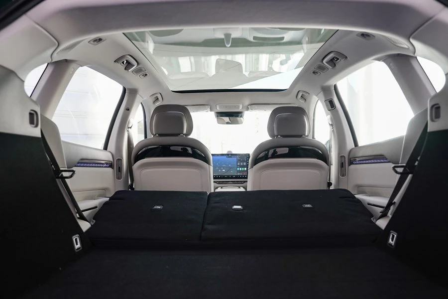 สำหรับเบาะหลังที่ปรับเอนด้วยระบบไฟฟ้าช่วยให้ผู้โดยสารสามารถปรับองศาการนั่งให้เหมาะกับกิจกรรมต่างๆ ไม่ว่าจะเป็นการทำงาน การพักผ่อน หรือการชมภาพยนตร์ ทำให้ห้องโดยสารหลังเปลี่ยนเป็นห้องนั่งเล่นส่วนตัวที่สมบูรณ์แบบซึ่งสะท้อนให้เห็นถึงความใส่ใจในรายละเอียดทุกมิติกับการออกแบบภายในที่คำนึงทุกอิริยาบถของผู้โดยสาร และการผ่อนคลายที่เหนือระดับ