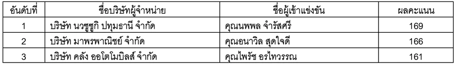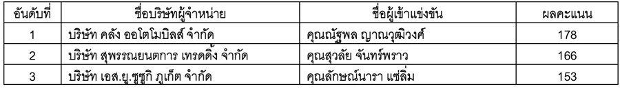 บริษัท คลัง ออโตโมบิลส์ จำกัด (สำนักงานใหญ่) จังหวัดนครราชสีมา บริหารงานโดย คุณสนาวุธ คลังเจริญพงษ์ภา ผลคะแนนรวม 339 คะแนน