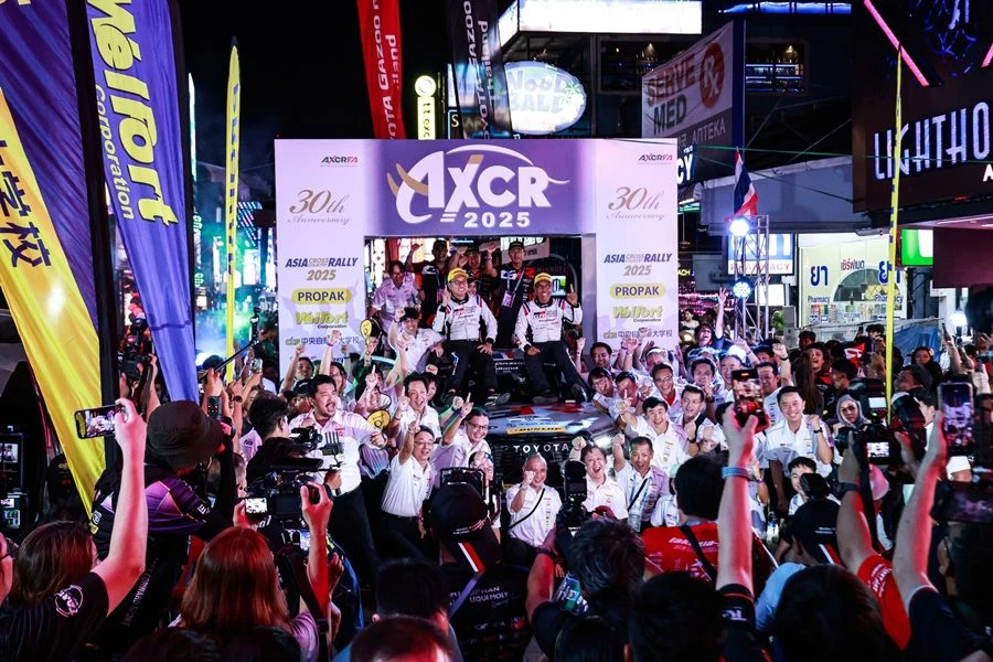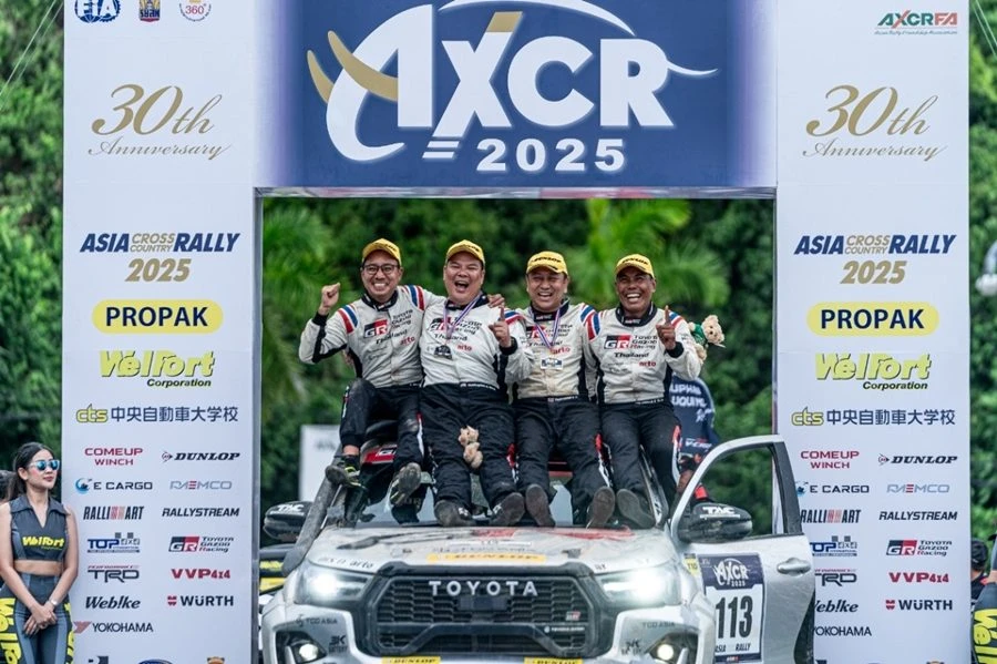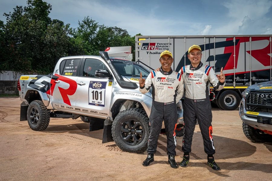 ประกาศความสำเร็จอีกครั้งกับ TOYOTA GAZOO Racing Thailand ทีมแข่งรถที่ประสบความสำเร็จอย่างสูงของวงการมอเตอร์สปอร์ต ภายใต้การสนับสนุนของ บริษัท โตโยต้า มอเตอร์ ประเทศไทย จำกัด โดยความร่วมมือกับทีมวิศวกรชาวไทยจาก บริษัท โตโยต้า มอเตอร์ เอเชีย (ประเทศไทย) จำกัด และอาร์โต เดินหน้าร่วมกันศึกษาเก็บข้อมูลเพื่อนำไปพัฒนายนตกรรมที่ดียิ่งกว่าให้กับผู้ใช้รถคนไทยในอนาคต ตามแนวคิด “MAKE EVER-BETTER CARS” “FROM CIRCUIT TO THE ROAD” ขึ้นโพเดียมเป็นปีที่ 2 คว้าอันดับ 2 และ 5 ในรุ่น T1D ด้วยรถแข่งสายพันธุ์แกร่ง “HILUX REVO GR SPORT 4x4” ในการแข่งขันแรลลี่สุดโหด “30th Asia Cross Country Rally 2025” (AXCR 2025) บนเส้นทางภาคตะวันออกจากจุดสตาร์ท พัทยา จ.ชลบุรี ระหว่างวันที่ 8-16 สิงหาคม 2568
