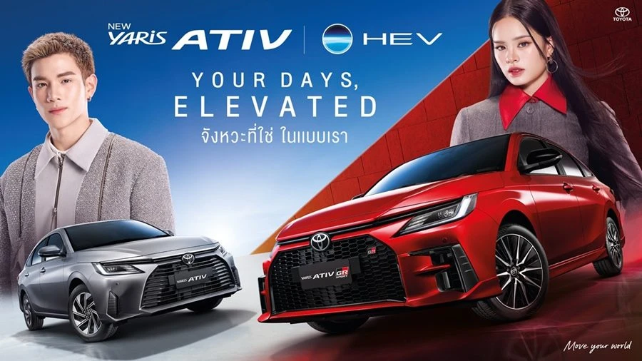 โดยในครั้งนี้เรามั่นใจว่า NEW YARIS ATIV HEV นั้นจะเข้ามาเติมเต็มความต้องการของลูกค้าในตลาดรถยนต์อีโคเซกเมนต์ ได้ครอบคลุมยิ่งขึ้น ด้วยทางเลือกที่หลากหลายตอบโจทย์คนรุ่นใหม่ที่มองหานวัตกรรม คุณภาพ เน้นความคุ้มค่าในระยะยาวและเป็นเจ้าของง่าย ผ่านการสื่อสาร ที่สะท้อนภาพลักษณ์ของคนรุ่นใหม่ ที่มุ่งมั่นสู่การพัฒนาตัวเองในทุกจังหวะของชีวิต พร้อมยกระดับชีวิตได้ในทุกมุมมอง ถ่ายทอดเรื่องราวผ่านพรีเซนเตอร์ที่เป็นตัวแทนของคนรุ่นใหม่ ทั้ง 2 ท่านภายใต้คอนเซปต์การสื่อสาร ‘YOUR DAYS ELEVATED’ ‘จังหวะที่ใช่ ในแบบเรา’