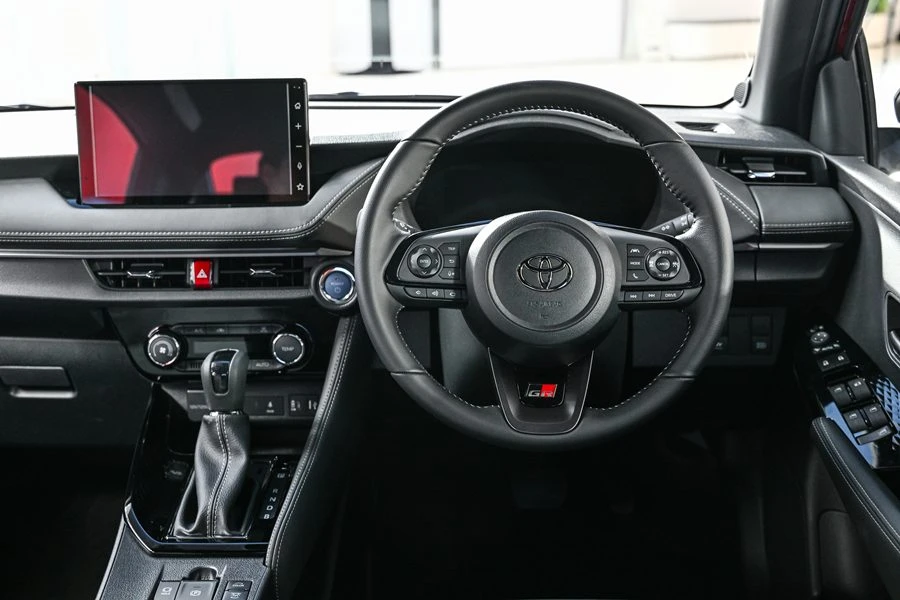 สำหรับภายในมากับเบาะหนังสังเคราะห์สีดำ พร้อมโลโก้ GR และเพิ่มความสนุกในการขับขี่ด้วยช่วงล่างและพวงมาลัยพาวเวอร์ไฟฟ้า EPS ปรับจูนพิเศษ