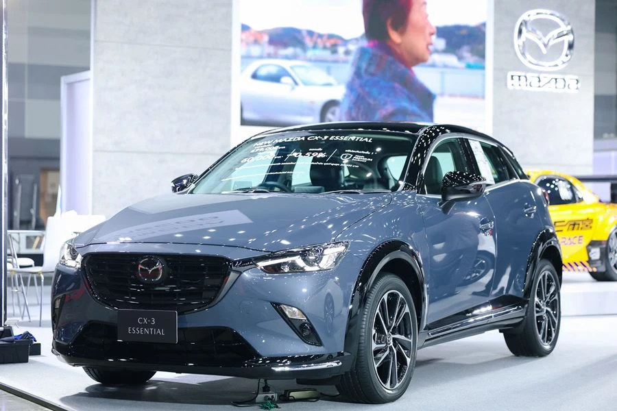 - New Mazda CX-3 Essential รุ่น Signature ครบครันทุกฟังก์ชั่นและดีไซน์สไตล์สปอร์ต ด้วยกระจังหน้า กระจกมองข้าง และหลังคาสีดำ พร้อมหลังคาซันรูฟแบบไฟฟ้า ไฟตัดหมอกคู่หน้าแบบ LED ระบบไฟหน้าเปิด-ปิดอัตโนมัติ ล้ออัลลอย ขนาด 18 นิ้ว ระบบควบคุมการเปลี่ยนเกียร์ที่พวงมาลัย ที่ปัดน้ำฝนแบบหน่วงเวลาและฟังก์ชั่นตรวจจับน้ำฝนอัตโนมัติ ภายในสปอร์ตพรีเมี่ยมด้วยแผงคอนโซลหน้าหุ้มด้วยหนังสีฟ้าเทา ตกแต่งด้วยด้ายสีคอปเปอร์ เบาะหนังสีดำและผ้า Grand Luxe Suede® กรอบช่องแอร์สีคอปเปอร์ นอกจากนิ้ ยังครบครันด้วยฟังก์ชั่นที่สะดวกสบายตอบโจทย์ไลฟ์สไตล์ยุคใหม่ และเทคโนโลยีความปลอดภัย i-Activsense หลายระบบ วางราคาจำหน่าย 899,000 บาท พร้อมข้อเสนอดอกเบี้ย 2.49% และฟรีประกันภัยชั้นหนึ่ง Mazda Premium Insurance 1 ปี