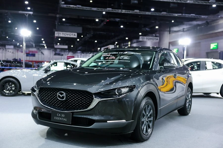 - New Mazda CX-30 Essential รุ่น Prime รุ่นเริ่มต้นใหม่ที่ออกแบบมาให้เป็นเจ้าของได้ง่าย มาพร้อมอุปกรณ์มาตรฐานครบครัน กับราคาเริ่มต้นที่เข้าถึงได้ง่ายกว่าเดิม มาพร้อมเทคโนโลยีความสะดวกสบายและความภัยครบครัน อาทิ ไฟหน้าโปรเจคเตอร์แบบ LED พร้อมระบบเปิด-ปิดและปรับสูง-ต่ำอัตโนมัติ ระบบควบคุมสมรรถนะการขับขี่อัจฉริยะขั้นสูง GVC Plus เบรกมือไฟฟ้า พร้อม Auto Hold และฟังก์ชั่นที่ตอบโจทย์ทุกไลฟ์สไตล์ อาทิ หน้าจอสี Center Display แบบ Widescreen ขนาด 8.8 นิ้ว รองรับ Apple CarPlay® และ Android AutoTM* เบาะนั่งคนขับปรับ 8 ทิศทาง เบาะนั่งผู้โดยสารด้านหน้าปรับได้ 6 ทิศทาง พร้อมถุงลมนิรภัยรวม 7 ตำแหน่ง วางราคาจำหน่ายเพียง 899,000 บาท พร้อมข้อเสนอดอกเบี้ย 2.49% และฟรีประกันภัยชั้นหนึ่ง Mazda Premium Insurance 1 ปี