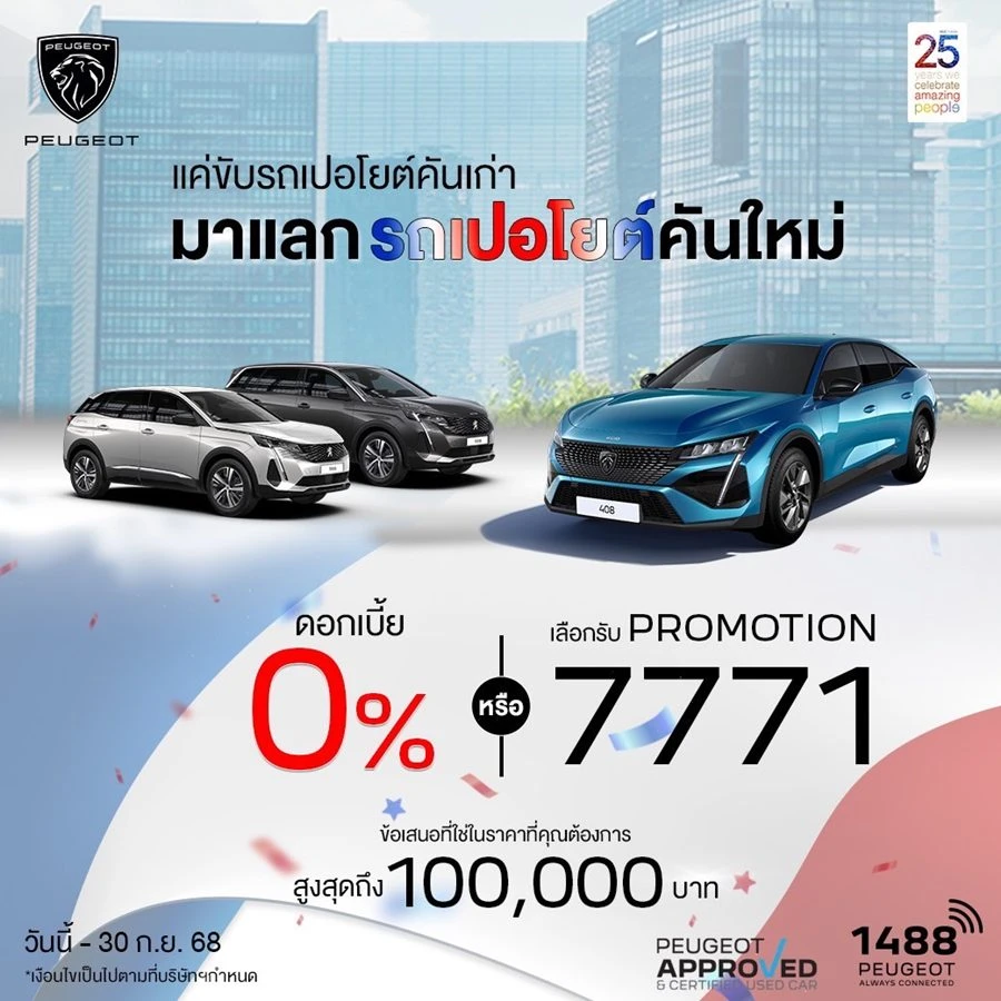 สอบถามข้อมูล โทร. ‘1488 ALWAYS CONNECTED’ LINE: @peugeotthailand