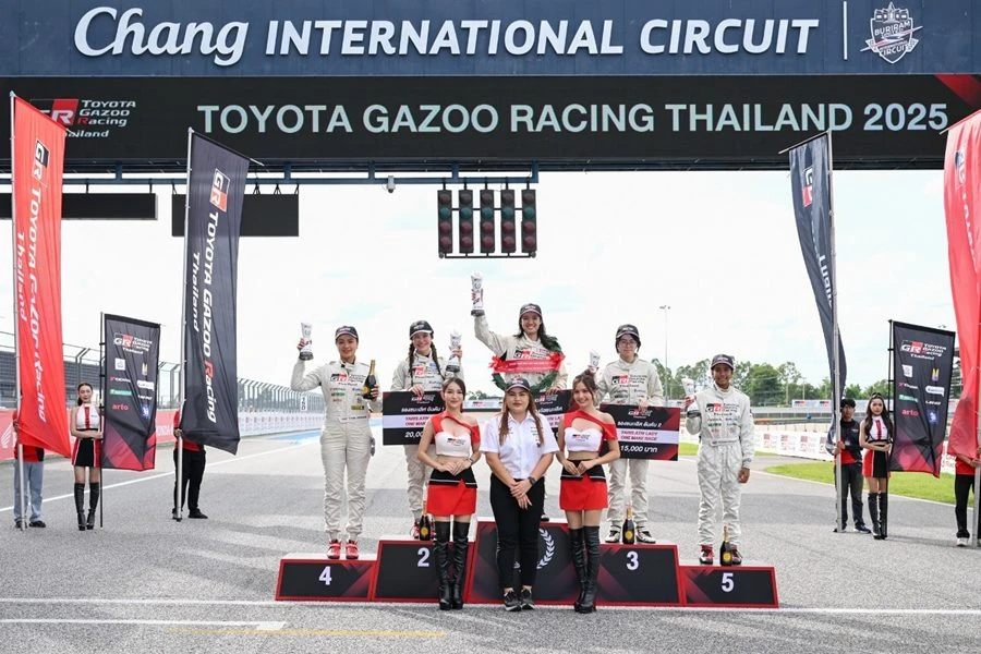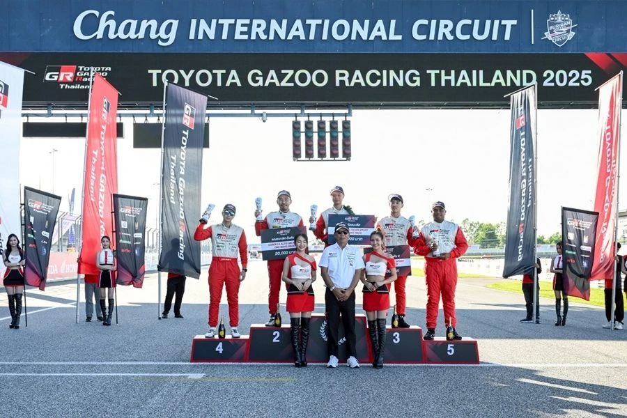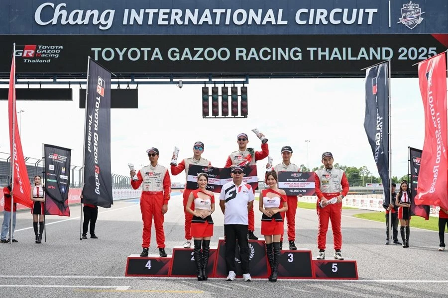 นายศุภกร รัตนวราหะ รองกรรมการผู้จัดการใหญ่ บริษัท โตโยต้า มอเตอร์ ประเทศไทย จำกัด พร้อมด้วย คุณโชติชนก ชิดชอบ ผู้อำนวยการฝ่ายกิจกรรมต่างประเทศ สนามช้าง อินเตอร์เนชั่นแนล เซอร์กิต ผู้แทนจำหน่ายโตโยต้าในจังหวัดบุรีรัมย์ และผู้สนับสนุนรายการอย่างเป็นทางการ ร่วมเปิดการแข่งขัน Toyota Gazoo Racing Thailand 2025 สนามที่ 3 และ 4 ที่จัดขึ้น ในวันที่ 13-14 กันยายน ที่ผ่านมา ณ สนามช้าง อินเตอร์เนชั่นแนล เซอร์กิต จ.บุรีรัมย์