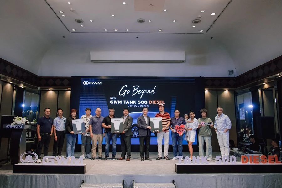 GWM (Thailand) ยกระดับสู่การเป็นแบรนด์รถยนต์ที่มีผลิตภัณฑ์ครอบคลุมทุกประเภทพลังงานที่ตอบสนองความต้องการของผู้ใช้งานทั่วทุกมุมโลก ด้วยแนวคิด “ครอบคลุมทุกการใช้งาน (All Scenarios) ด้วยผลิตภัณฑ์ที่ครอบคลุมทุกพลังงาน (All Powertrains) สู่การตอบสนองทุกกลุ่มผู้ใช้งานอย่างแท้จริง (All Users)” ล่าสุด ได้สร้างอีกหนึ่งหมุดหมายสำคัญในงาน “Go Beyond NEW GWM TANK 500 DIESEL Delivery Ceremony” เพื่อเฉลิมฉลองความสำเร็จของ NEW GWM TANK 500 DIESEL ที่กวาดยอดจองเพื่อรอการส่งมอบกว่า 500 คันหลังเปิดตัวได้ไม่นาน พร้อมจัดพิธีส่งมอบรถล็อตพิเศษเพิ่มอีก 20 คันอย่างเป็นทางการ ณ โรงแรมสุโขทัย