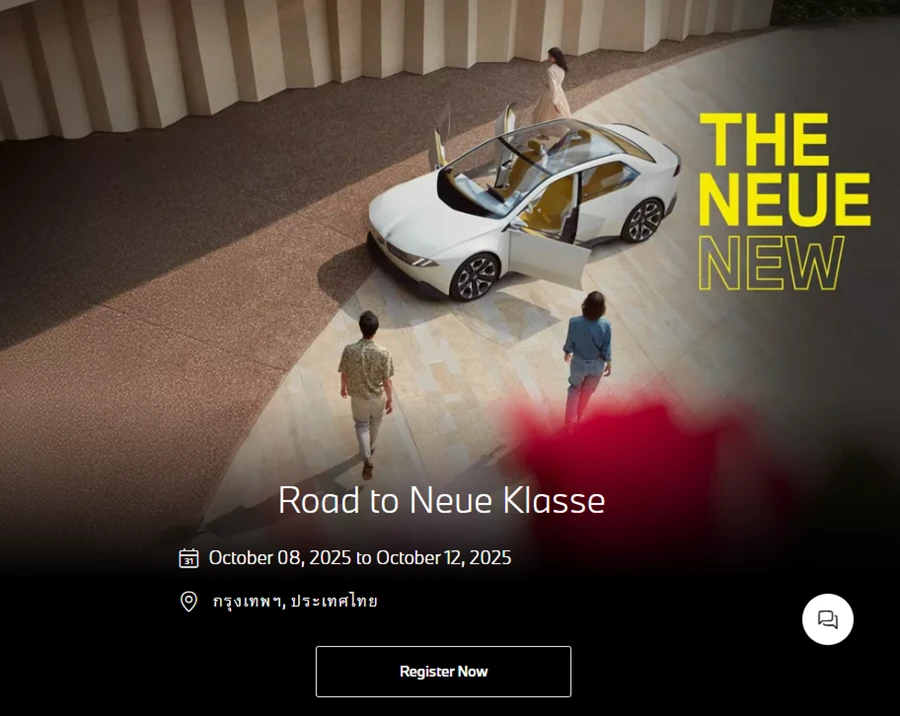 Road to Neue Klasse ณ ชั้น G เซ็นทรัล เอ็มบาสซี ตั้งแต่วันที่ 8 ถึง 12 ตุลาคมนี้ โดยสามารถลงทะเบียนเพื่อเข้าชมและเลือกวัน-เวลาที่ต้องการได้