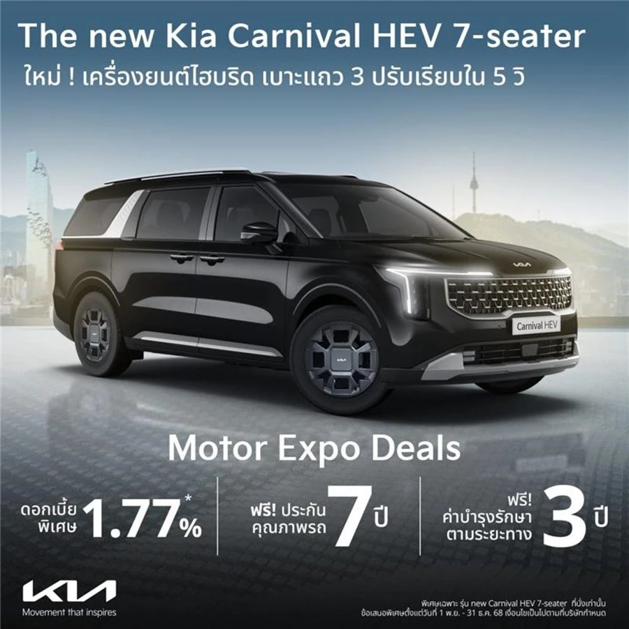 โปรโมชันสำหรับ The new Kia Carnival HEV 7-seater สำหรับวันที่ 1 พฤศจิกายน – 31 ธันวาคม 2568