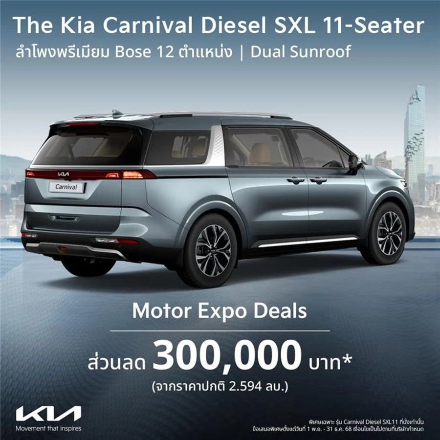 โปรโมชันสำหรับ The Kia Carnival Diesel SXL (11 ที่นั่ง) สำหรับวันที่ 1 พฤศจิกายน – 31 ธันวาคม 2568