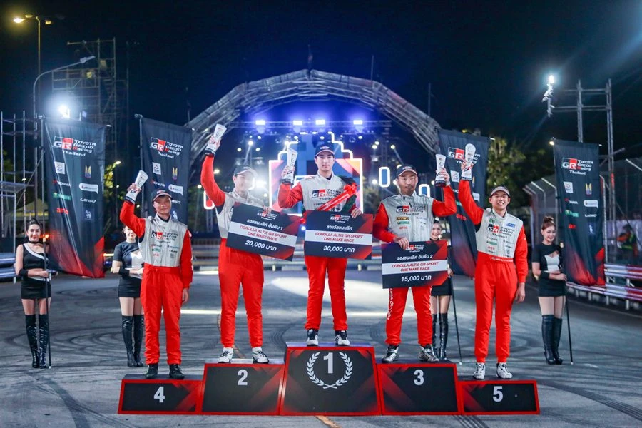 สุดท้ายนี้ ขอขอบคุณท่านผู้สนับสนุนรายการอย่างเป็นทางการ โยโกฮามา / พีทีที สเตชั่น / โมเดลลิสต้า / เลนโซ่ / อาร์โต / สิงห์ คอร์ปอเรชั่น ผู้ที่เกี่ยวข้องทุกภาคส่วน และแฟนมอเตอร์สปอร์ต ที่ร่วมกิจกรรมในวันนี้ ขอให้ทุกท่านเพลิดเพลิน และสัมผัสจิตวิญญาณของ โตโยต้า กาซู เรซซิ่ง ไทยแลนด์”