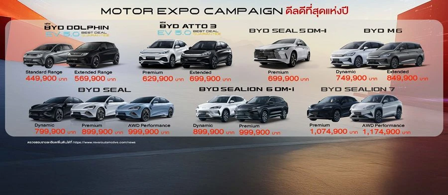 สำหรับรถยนต์ไฟฟ้านำเข้า ประกอบด้วย BYD SEAL, BYD M6, BYD SEALION 7 และ DENZA D9 นอกจากจะไม่ได้รับทั้งเงินสนับสนุนจากภาครัฐสูงสุดมูลค่า 75,000 บาทแล้ว ยังมีการปรับอัตราการจัดเก็บภาษีสรรพสามิตรเพิ่มขึ้นจากเดิมอีก 8% รวมเป็น 10% ช่วงเวลานี้จึงเป็นเวลาที่เหมาะสมที่สุด ในการออกรถยนต์พลังงานใหม่จาก บีวายดี ที่ผู้บริโภคชาวไทยมากกว่า 100,000 ราย ให้การยอมรับในคุณภาพและนวัตกรรมระดับชั้นนำของวงการ