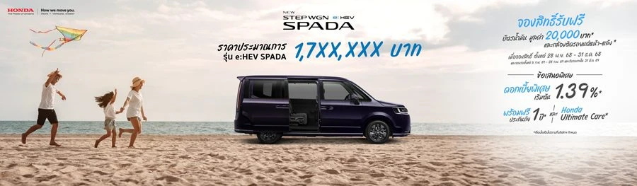 - เซอร์ไพรส์พิเศษ! กับการกลับมาของ Honda STEP WGN e:HEV รถครอบครัว 7 ที่นั่ง ที่หลายคนรอคอย รุ่นนำเข้าจากประเทศญี่ปุ่น พร้อมเผยสเปกและราคาประมาณการ รุ่น e:HEV SPADA 1,7XX,XXX บาท จัดแสดงให้สัมผัสคันจริงเฉพาะในงาน Motor Expo 2025 และเปิดรับจองสิทธิ์ล่วงหน้าทั้งในงานและโชว์รูมฮอนด้าทั่วประเทศ