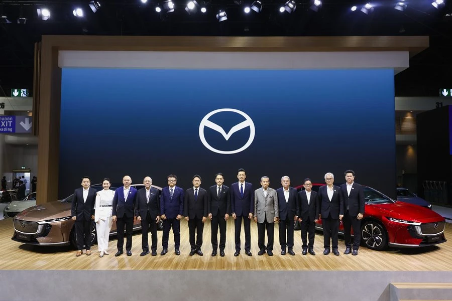 มร. โทรุ นากาจิม่า Managing Executive Officer, มร. ฮิโรชิ ชิบะ General Manager of Asean Office มาสด้า มอเตอร์ คอร์ปอเรชั่น ประเทศญี่ปุ่น พร้อมด้วย นายธีร์ เพิ่มพงศ์พันธ์ ประธานกรรมการบริหารและซีอีโอ และ มร. ทาเคชิ ซาโตะ รองประธานกรรมการบริหารและประธานเจ้าหน้าที่สายงานการเงิน บริษัท มาสด้า เซลส์ (ประเทศไทย) จำกัด และได้รับเกียรติอย่างสูงจากคณะสื่อมวลชนกิตติมศักดิ์ให้เกียรติร่วมพิธีเปิดบูธแสดงรถยนต์ไฟฟ้ารุ่นใหม่จากมาสด้า ในงานมหกรรมยานยนต์ ครั้งที่ 42 อาคารชาเลนเจอร์ ฮอลล์ อิมแพค เมืองทองธานี