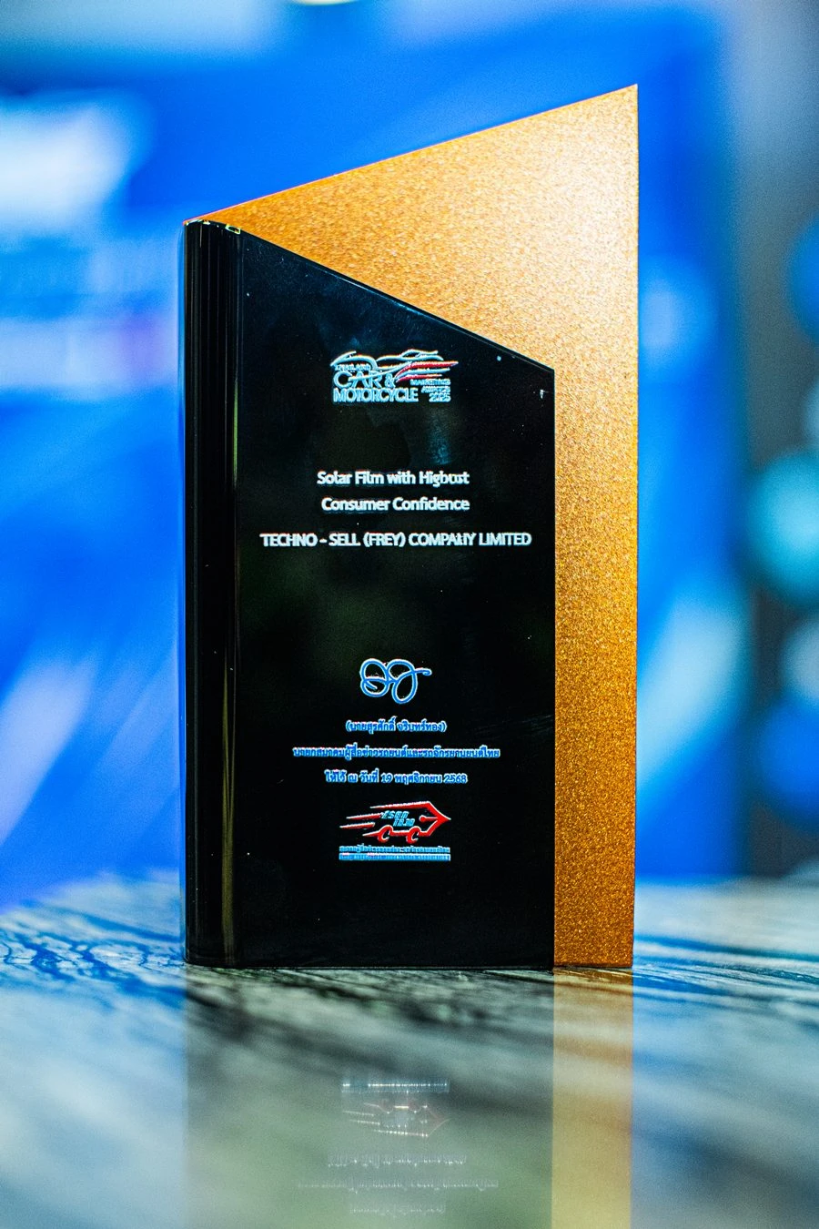 นายเกรียงศักดิ์ ดำรงสกุล ผู้ช่วยผู้อำนวยการฝ่ายบริหารงานกลยุทธ์งานขาย บริษัท เทคโนเซล (เฟรย์) จำกัด ผู้แทนฟิล์มกรองแสงรถยนต์และอาคาร ลามิน่า รับรางวัล ผู้จำหน่ายฟิล์มกรองแสงรถยนต์ที่ได้รับความเชื่อมั่นสูงสุดประจำปี พ.ศ.2568 หมวดรางวัลเกียรติยศ Thailand Car & Motorcycle Marketing Awards 2025 ต่อเนื่อง 5 ปีซ้อน จาก นายสุรศักดิ์ จรินทร์ทอง นายกสมาคมผู้สื่อข่าวรถยนต์และรถจักรยานยนต์ไทย (สรยท.) โดยมี ดร.ณัฐพล รังสิตพล ปลัดกระทรวงอุตสาหกรรม ให้เกียรติเป็นประธานในพิธี