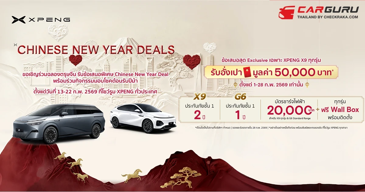 สัมผัสและทดลองขับ เอ็กซ์เผิง พร้อมร่วมกิจกรรมเสริมมงคลรับตรุษจีน ‘XPENG Chinese New Year Deal’ ระหว่างวันที่ 13-22 กุมภาพันธ์ 2569 ที่โชว์รูม เอ็กซ์เผิง ทุกสาขาทั่วประเทศ