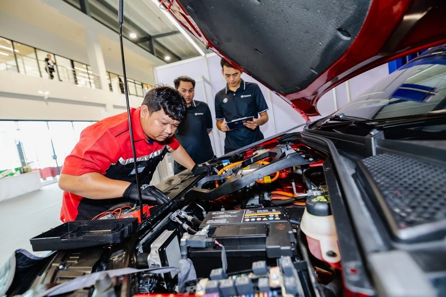 พร้อมกันนี้ ยังมีการพัฒนาศักยภาพผู้จำหน่าย ทีมขาย และทีมบริการอย่างรอบด้าน  และการนำเทคโนโลยีมาใช้ตอบสนองบริการหลังการขาย ซึ่งเราได้เตรียมระบบ e-Workshop เพื่อเชื่อมต่อข้อมูลกับผู้จำหน่ายสำหรับติดตามงานบริการแบบเรียลไทม์ ซึ่งจะเพิ่มประสิทธิภาพการทำงาน ลดขั้นตอนการตรวจสอบ รองรับการเก็บข้อมูลในระยะยาว และให้การบริการที่สมบูรณ์แบบ โดยจะเริ่มใช้งานกับผู้จำหน่ายในเขตกรุงเทพฯ และปริมณฑลและจะขยายสู่ศูนย์บริการทั่วประเทศภายในสิ้นปีนี้ รวมถึงการทำการนัดหมายเข้าศูนย์บริการและแจ้งสถานะการบริการแบบเรียลไทม์ผ่านระบบ LINE OA เพื่อเพิ่มความสะดวกให้ลูกค้า โดยมีแผนเริ่มใช้งานในช่วงกลางปีนี้เพื่อยกระดับประสบการณ์ลูกค้าแบบ End-to-End