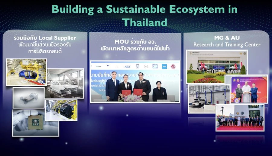 นอกจากงานบริการแล้ว เอ็มจี ยังให้ความสำคัญกับการบริหารจัดการอะไหล่ด้วยระบบสั่งด่วนภายใน 24 ชั่วโมง ซึ่งปัจจุบันมีอัตราจ่ายอะไหล่ครั้งแรกสูงถึง 99.38% ช่วยลดเวลารถค้างซ่อมและสร้างความพึงพอใจให้ลูกค้าได้อย่างเป็นรูปธรรม นอกจากนี้ เอ็มจี ยังจะให้ความร่วมมือกับหน่วยงานภายนอก โดยเฉพาะสถาบันการศึกษาชั้นนำ อาทิ มหาวิทยาลัยอัสสัมชัญ ด้วยการจัดตั้งศูนย์วิจัยยานยนต์และการเรียนรู้ยานยนต์ไฟฟ้าแบบครบวงจร  ในการร่วมกันสร้างและพัฒนาบุคลากรที่มีคุณภาพเข้าสู่วงการยานยนต์ไทยอย่างต่อเนื่อง เอ็มจี เชื่อว่าความสำเร็จของแบรนด์ในระยะยาว จะเกิดจากมาตรฐานที่สม่ำเสมอทั่วประเทศ ทั้งสินค้า บริการ และระบบสนับสนุนต่าง ๆ เพื่อให้ เอ็มจี เติบโตไปพร้อมกับลูกค้าและอุตสาหกรรมยานยนต์ไทยอย่างมั่นคงและยั่งยืน”