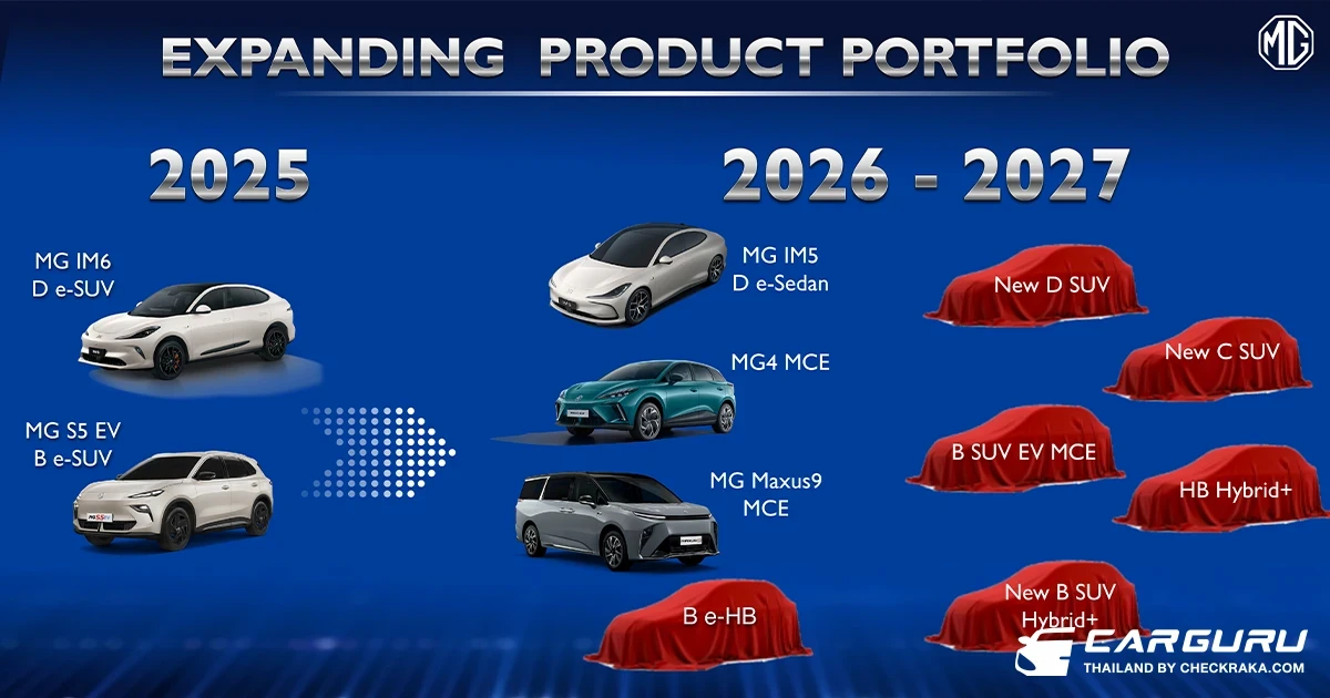 ภายใต้กลยุทธ์ “Dual Track” เอ็มจี เดินหน้าพัฒนาผลิตภัณฑ์ทั้งกลุ่มรถยนต์เครื่องยนต์สันดาป รถยนต์ไฮบริด และรถยนต์ไฟฟ้า ควบคู่กันอย่างชัดเจน พร้อมเปิดตัวรถใหม่อย่างต่อเนื่องในแต่ละไตรมาส เพื่อสร้างความสดใหม่ให้กับตลาด พร้อมรักษาความต่อเนื่องของไลน์อัปสินค้า และทำให้ผลิตภัณฑ์ของ เอ็มจี ตอบโจทย์ความต้องการของผู้บริโภคครอบคลุมในทุกเซกเมนต์ รวมถึงการนำ “เทคโนโลยีอัจฉริยะ” มาเป็นแกนหลักในการพัฒนาผลิตภัณฑ์ เพื่อสร้างความแตกต่างและยกระดับมาตรฐานตลาดรถยนต์ไทย ในปี 2026 เอ็มจี มีแผนขยายพอร์ตโฟลิโอรถยนต์ไฟฟ้าอย่างชัดเจน เริ่มตั้งแต่งานมอเตอร์โชว์ ด้วยการเปิดตัว MG IM5 ในกลุ่มพรีเมียมอีวี พร้อมด้วย NEW MG MAXUS 9 MCE ในกลุ่ม e-MPV และ NEW MG4 ELECTRIC MINORCHANGE เพื่อเสริมความแข็งแกร่งให้ไลน์อัปยอดนิยมของแบรนด์