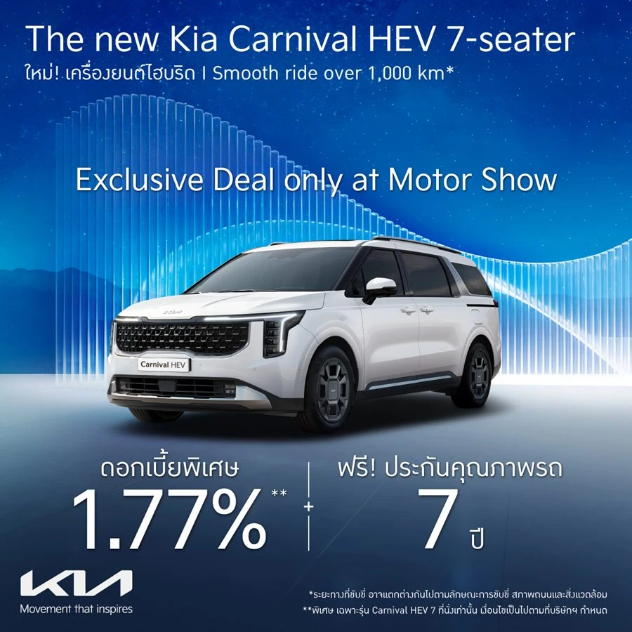 โปรโมชัน The new Kia Carnival HEV 7 ที่นั่ง ใหม่ ตั้งแต่วันที่ 2 มีนาคม ถึง 30 เมษายน 2569