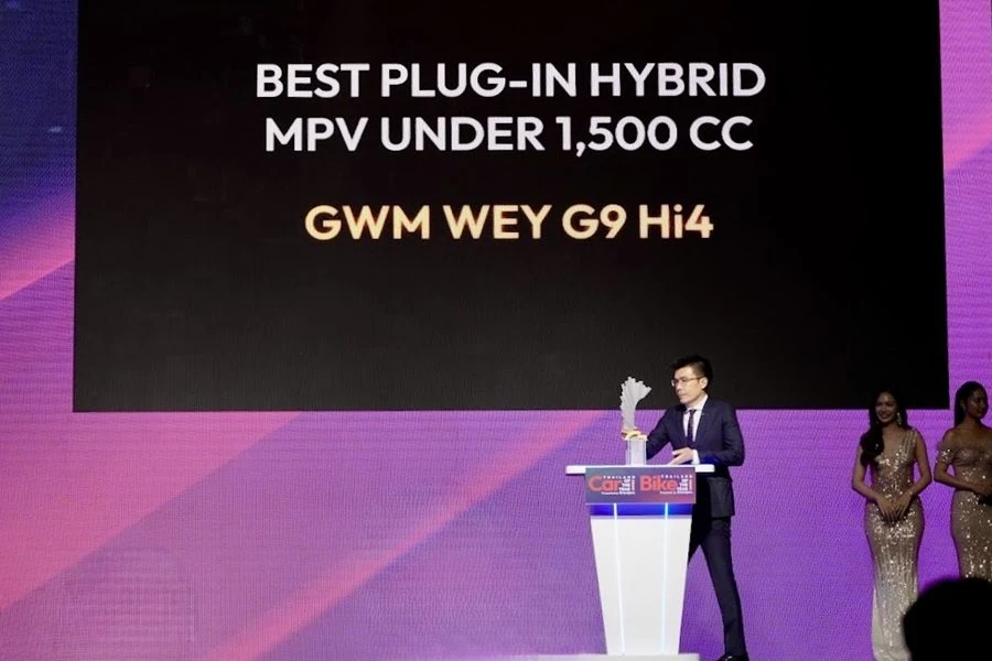 อีกหนึ่งรุ่นที่คว้ารางวัล Best Plug-in Hybrid MPV ที่มีขนาดเครื่องยนต์ต่ำกว่า 1,500 c.c. คือบทพิสูจน์ความสำเร็จของ WEY G9 ซึ่งเป็น MPV หรู โดดเด่นด้วย Hi4 Technology ระบบขับเคลื่อนไฮบริดสี่ล้ออัจฉริยะ ผสานพลังเครื่องยนต์และมอเตอร์ไฟฟ้าคู่เพื่อการขับขี่ที่มั่นคงและทรงพลัง พร้อม Coffee OS 3.3 ระบบปฏิบัติการอัจฉริยะที่ทำงานร่วมกับ AI เชื่อมต่อทุกฟังก์ชันอย่างล้ำสมัย
