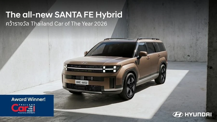 บริษัท ฮุนได โมบิลิตี้ (ประเทศไทย) จำกัด ประกาศความสำเร็จรับต้นปี 2569 หลังคว้า 2 รางวัลอันทรงเกียรติจากเวทีประกาศรางวัลรถยอดเยี่ยมแห่งปี “CAR & BIKE OF THE YEAR 2026” จัดโดย บริษัท กรังด์ปรีซ์ อินเตอร์เนชั่นแนล จำกัด (มหาชน) สะท้อนความแข็งแกร่งของไลน์อัป SUV