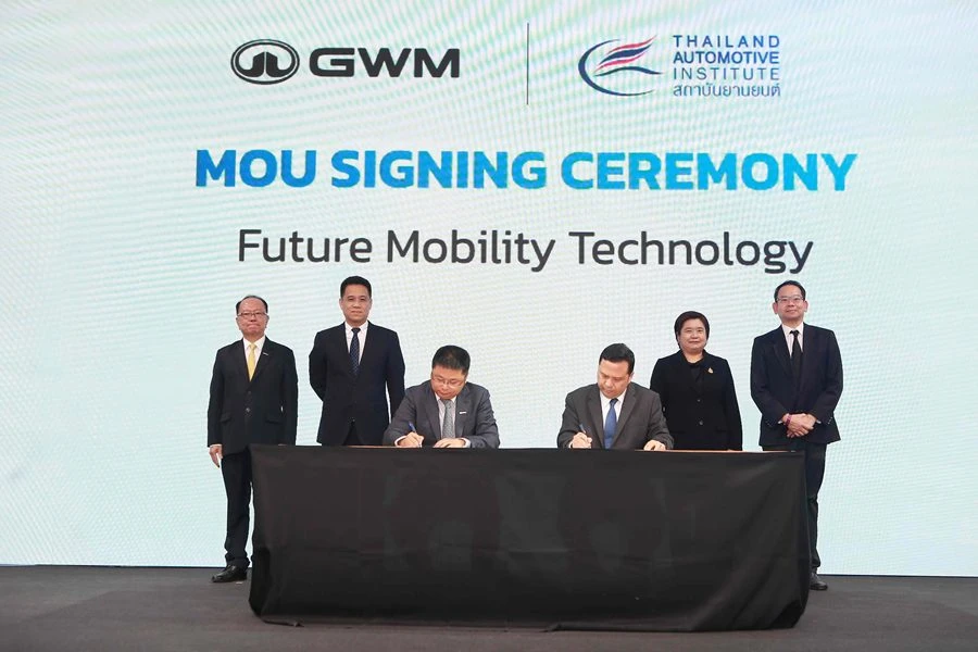 ในพิธีลงนามครั้งนี้ เวย์น โจว กรรมการผู้จัดการ ทำหน้าที่เป็นผู้แทนของ GWM (Thailand) ในการลงนาม โดยมี ปาร์คเกอร์ ฉือ ประธาน GWM ตลาดต่างประเทศ และ นายครรชิต ไชยสุโพธิ์ รองประธานฝ่ายกิจการองค์กรและรัฐกิจสัมพันธ์ ร่วมเป็นสักขีพยาน ขณะที่ฝ่าย สถาบันยานยนต์ นำโดย คุณตรีพล บุณยะมาน รองผู้อำนวยการสถาบันยานยนต์ ร่วมลงนามในพิธี โดยมี นางดวงดาว ขาวเจริญ รองปลัดกระทรวงอุตสาหกรรม เป็นผู้แทนกระทรวงอุตสาหกรรมในการร่วมเป็นสักขีพยานในโอกาสดังกล่าว