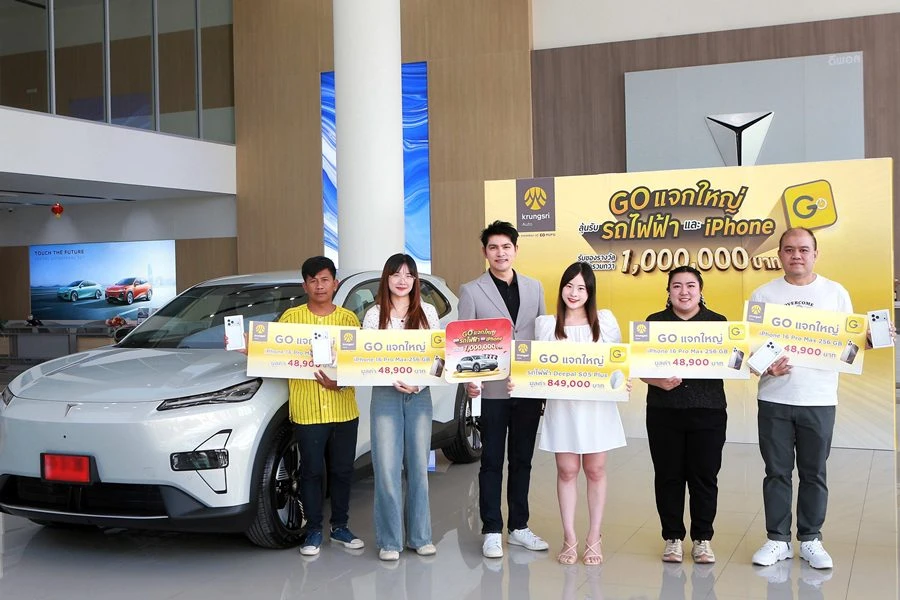 ‘กรุงศรี ออโต้’ ผู้นำธุรกิจสินเชื่อยานยนต์ครบวงจร เครือธนาคารกรุงศรีอยุธยา จำกัด (มหาชน) จัดกิจกรรมพิเศษผ่านแคมเปญ “GO แจกใหญ่” บนแอป โก บาย กรุงศรี ออโต้ เพื่อส่งเสริมการใช้งานและการมีส่วนร่วมบนแพลตฟอร์มดิจิทัลของผู้ใช้รถ พร้อมมอบรางวัลสุดเอ็กซ์คลูซีฟมูลค่ากว่า 1,000,000 บาท ได้แก่ รถยนต์ไฟฟ้า Deepal S05 Plus จำนวน 1 รางวัล และ iPhone 16 Pro Max จำนวน 4 รางวัล ให้แก่ 5 ผู้โชคดี โดยมี นายชนากิติ์ โบลาท ผู้อำนวยการอาวุโส ผู้บริหารฝ่ายดิจิทัล ธุรกิจสินเชื่อยานยนต์ ธนาคารกรุงศรีอยุธยา จำกัด (มหาชน) เป็นผู้มอบรางวัล ณ สำนักงานขาย ดีพอล จิน มอเตอร์ ศรีนครินทร์ จังหวัดสมุทรปราการ เมื่อเร็ว ๆ นี้