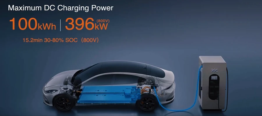 4. สถาปัตยกรรม 800V มาพร้อมแบตเตอรี่ CATL ประสิทธิภาพสูง สามารถรับกระแสไฟสูงสุด 396 kW พร้อมมอบระยะทางการขับขี่ไกลกว่า 860 กิโลเมตรต่อการชาร์จหนึ่งครั้ง