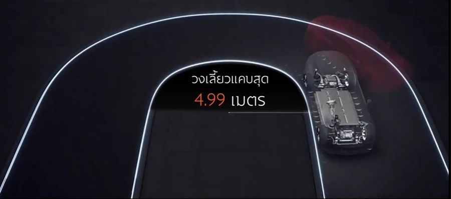 มาพร้อมระบบบังคับเลี้ยว 4 ล้ออัจฉริยะ (Intelligent 4-Wheel Steering) ที่ช่วยให้การควบคุมรถคล่องตัวและแม่นยำยิ่งขึ้น ลดรัศมีวงเลี้ยวเหลือ เพียง 4.99 เมตร ทำให้การกลับรถในที่แคบหรือการขับในพื้นที่จำกัดเป็นเรื่องง่าย พร้อมเพิ่มเสถียรภาพในการเปลี่ยนเลนที่ความเร็วสูง ผสานการทำงานกับ เทคโนโลยี One Touch iAD ที่ช่วยให้การจอดรถและควบคุมการเคลื่อนตัวของรถเป็นเรื่องง่ายเพียงปลายนิ้วสัมผัส ไม่ว่าจะเป็นการจอดข้างทาง เข้าช่องจอด หรือถอยออกจากพื้นที่แคบ ระบบสามารถคำนวณและควบคุมการเคลื่อนรถได้อย่างแม่นยำ ช่วยคลี่คลายปัญหาที่จอดยากในชีวิตประจำวัน ให้ทุกสถานการณ์การจอดเป็นเรื่องง่าย สะดวก และมั่นใจยิ่งขึ้นสำหรับผู้ขับขี่