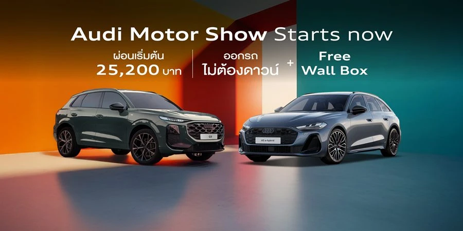 เตรียมตัวให้พร้อมเพื่อสัมผัสนวัตกรรมและเทคโนโลยีล่าสุดจากอาวดี้ที่งาน Bangkok International Motor Show 2026 (บางกอก อินเตอร์เนชั่นแนล มอเตอร์โชว์ 2026) ตั้งแต่วันที่ 25 มีนาคม - 5 เมษายน 2569 ณ ชาเลนเจอร์ ฮอลล์ อิมแพ็ค เมืองทองธานี (เงื่อนไขเป็นไปตามที่บริษัทฯ กำหนด และบริษัทฯ ขอสงวนสิทธิ์ยกเลิกโปรโมชั่นในกรณีที่สินค้าหมด) สอบถามรายละเอียดเพิ่มเติมหรือติดตามความเคลื่อนไหวได้ที่ Facebook / Instagram: Audi Thailand