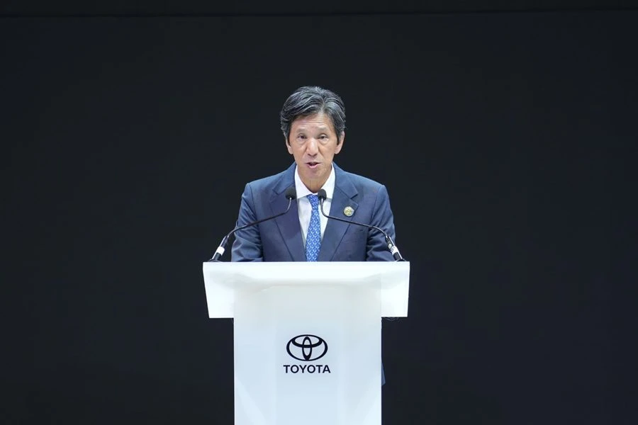 มร.โนริอากิ ยามาชิตะ กล่าวเปิดบูธว่า “ก่อนอื่น ผมขอกล่าวถึงสถานการณ์ของตลาดยานยนต์ในประเทศไทย และผลการดำเนินงานของโตโยต้าในช่วงที่ผ่านมา ในปีที่ผ่านมา ตลาดรถยนต์ของประเทศไทยเริ่มส่งสัญญาณการฟื้นตัวอย่างค่อยเป็นค่อยไป โดยมียอดขายรวมทั้งตลาดอยู่ที่ประมาณ 621,000 คัน เพิ่มขึ้น 8% จากปีก่อนหน้า สะท้อนถึงความเชื่อมั่นของผู้บริโภคที่เริ่มกลับมาอย่างต่อเนื่อง