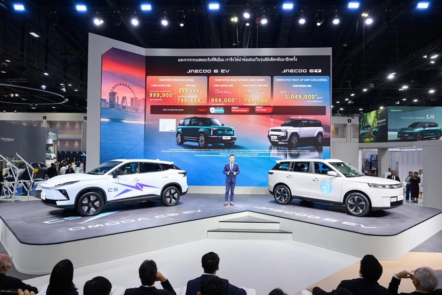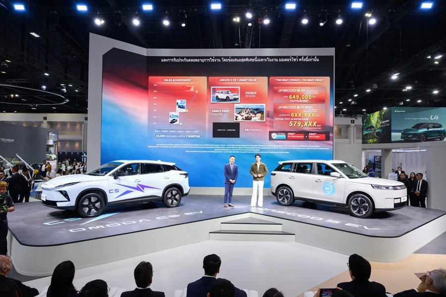นอกจากนี้ บริษัทฯ ยังได้เปิดตัว JAECOO 5 EV MAX+ รถไฟฟ้าที่มาด้วยแบตเตอรี 50.6 kwh รุ่นใหม่ที่โดดเด่นด้านความคุ้มค่า ฟีเจอร์ครบครัน และตอบโจทย์การใช้งานจริงของครอบครัวยุคใหม่ ด้วยการประกาศราคาคาดการณ์ 6xx,xxx บาท และสำหรับภายในช่วง Motor Show ตั้งแต่วันที่ 23 มีนาคม – 5 เมษายน 2569 ลงทะเบียนจองสิทธิ์รับราคาพิเศษ 579,xxx บาท* (ก่อนปรับเป็น 6xx,xxx บาท ตั้งแต่วันที่ 6 เมษายน 2569 เป็นต้นไป)