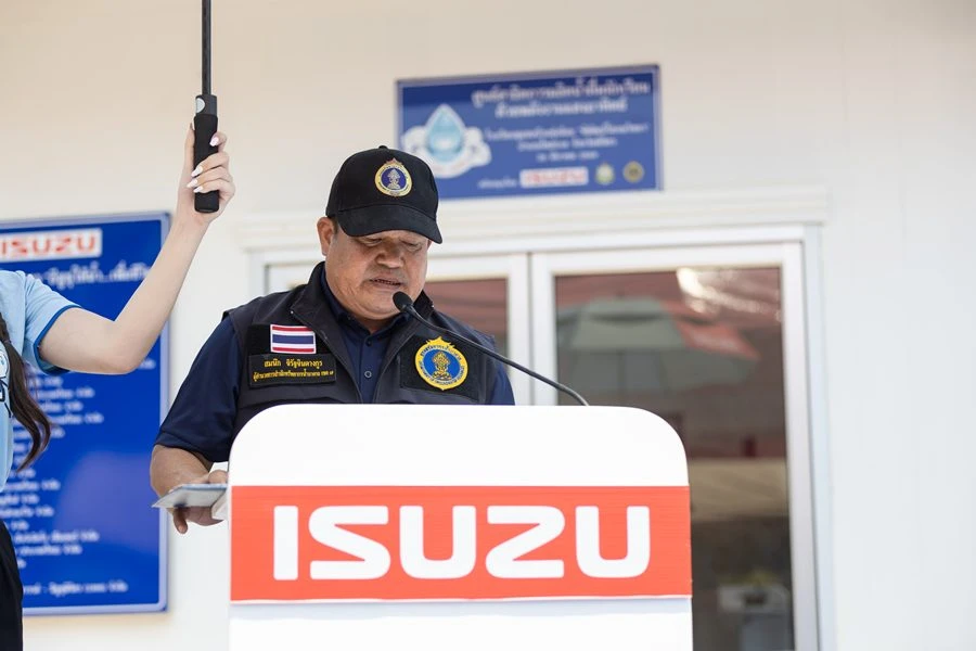 มร. ทาเคชิ ยาซุอิ รองกรรมการผู้จัดการ บริษัท ตรีเพชรอีซูซุเซลส์ จำกัด กล่าวว่า “โครงการ “อีซูซุให้น้ำ...เพื่อชีวิต” เป็นกิจกรรมเพื่อสังคมระยะยาวที่กลุ่มอีซูซุยึดมั่นดำเนินการอย่างต่อเนื่องดยมีเป้าหมายให้ทุกโรงเรียนในประเทศไทยสามารถเข้าถึงน้ำดื่มสะอาดได้อย่างเพียงพอ แม้ในปัจจุบันกลุ่มอีซูซุต้องเผชิญความท้าทายจากวิกฤตเศรษฐกิจโลกที่ส่งผลกระทบต่อภาคธุรกิจโดยรวม ท่ามกลางภาวะการณ์อันยากยิ่งเช่นนี้ เรายังคงยืนยันที่จะผลักดันโครงการนี้อย่างเต็มความสามารถและยังคงมุ่งมั่นอย่างเต็มที่ในการดำเนินกิจกรรมเพื่อสังคมตามที่ได้ตั้งปณิธานไว้”