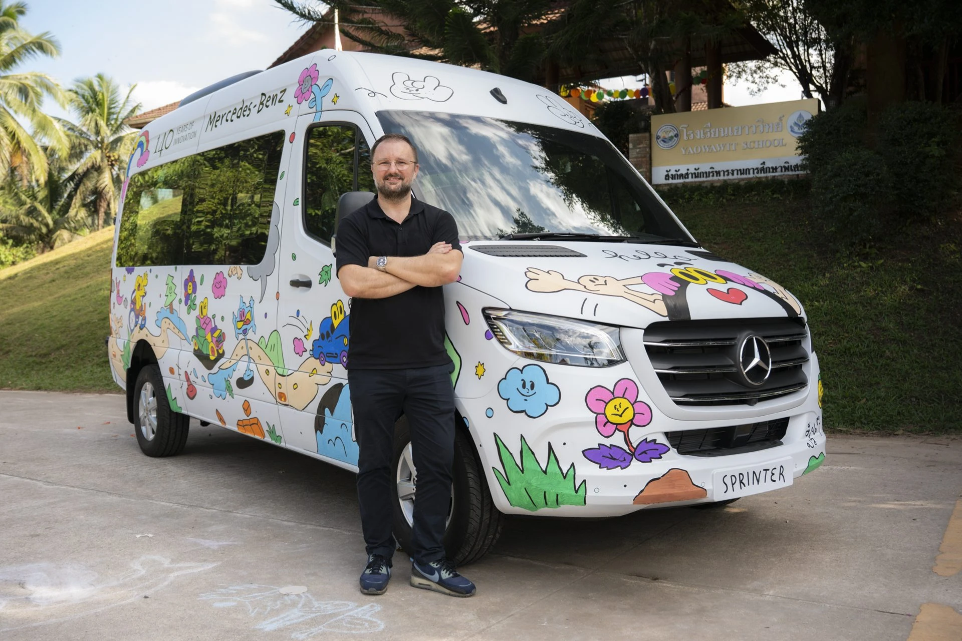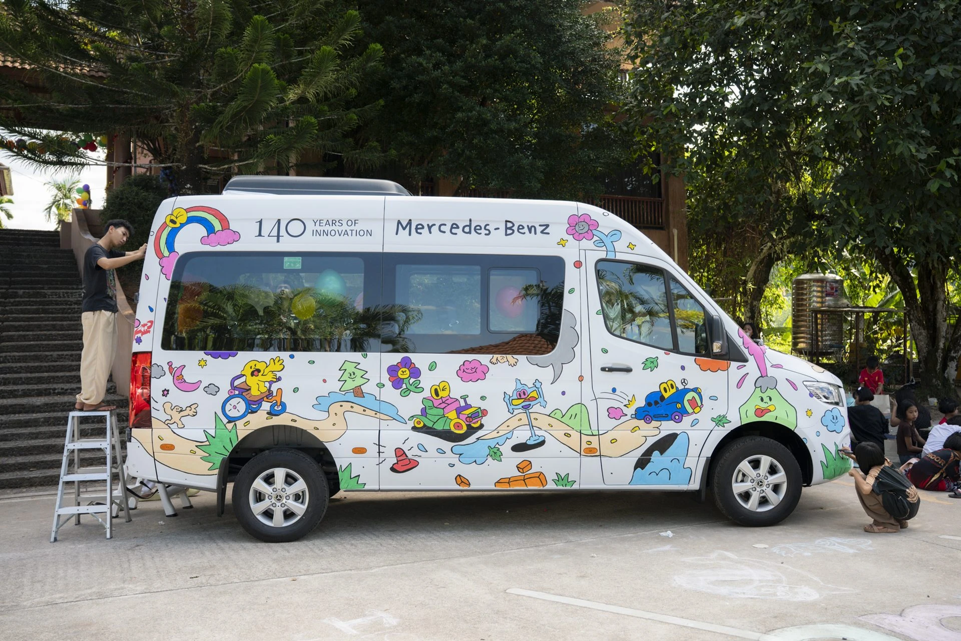 ผลงานการออกแบบ Mercedes-Benz Sprinter 419 Business รุ่นพิเศษ เกิดขึ้นจากความร่วมมือระหว่าง เมอร์เซเดส-เบนซ์ ประเทศไทย และศิลปินนักวาดภาพประกอบชื่อดังอย่าง คุณต๊อด - อารักษ์ อ่อนวิลัย หรือที่รู้จักกันในนาม “SAHRED TOY” ที่มาร่วมดีไซน์ตัวการ์ตูนและลายเส้น ซึ่งสะท้อนแรงบันดาลใจมาจากการเฉลิมฉลอง 140 ปีแห่งนวัตกรรมยานยนต์ (140 Years of Innovation) โดยในช่วงวันเด็กแห่งชาติ เมื่อเดือนมกราคมที่ผ่านมา ทีมผู้บริหารได้เข้าไปเยี่ยมโรงเรียนเยาววิทย์ ที่จังหวัดพังงา พร้อมจัดกิจกรรมพิเศษให้เด็กนักเรียนทุกคนได้มีโอกาสระบายสีลงบนรถแวนคันพิเศษ เพื่อสร้างรอยยิ้มให้กับเด็กๆ ทุกคน รวมถึงการเสริมสร้างทักษะและจินตนาการด้านศิลปะให้กับเยาวชนรุ่นใหม่