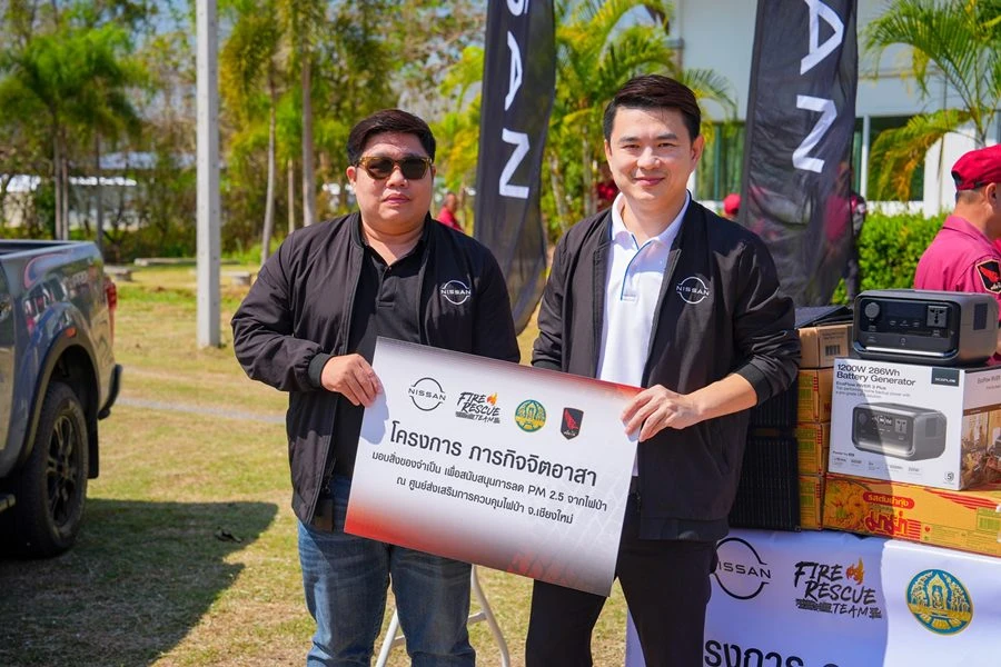 นิสสัน ประเทศไทย ได้ร่วมสนับสนุนภารกิจป้องกันและดับไฟป่ามาอย่างต่อเนื่อง โดยเริ่มจากการสนับสนุนรถกระบะนิสสัน นาวารา ที่มีความ “ทน พร้อม ลุย” สมรรถนะสูง เหมาะสำหรับการเข้าถึงพื้นที่ทุรกันดาร ช่วยให้เจ้าหน้าที่เดินทางเข้าสู่จุดความร้อนได้อย่างรวดเร็ว และในปีนี้ นิสสัน ประเทศไทย ได้จัดกิจกรรมนำอุปกรณ์สนับสนุนการปฏิบัติงานไปมอบให้แก่ศูนย์ส่งเสริมการควบคุมไฟป่าเชียงใหม่ ได้แก่ เครื่องกำเนิดไฟฟ้าพลังงานแสงอาทิตย์แบบพกพา ซึ่งรองรับการใช้งานคอมพิวเตอร์ โทรศัพท์มือถือ กล้อง วิทยุสื่อสาร และอุปกรณ์ไฟฟ้าต่าง ๆ พร้อมทั้งสนับสนุนข้าวสาร อาหารแห้ง และเสบียงที่จำเป็น เพื่อเพิ่มประสิทธิภาพการทำงานในพื้นที่ภาคเหนือ ซึ่งพบจุดความร้อนสูงสุดของประเทศ โดยกว่าร้อยละ 80 อยู่ในเขตป่า ทั้งนี้ ความร่วมมือดังกล่าวสอดรับกับเป้าหมายภาครัฐในการลดพื้นที่เผาไหม้ทั่วประเทศลงไม่น้อยกว่าร้อยละ 10 จากปีก่อนหน้า