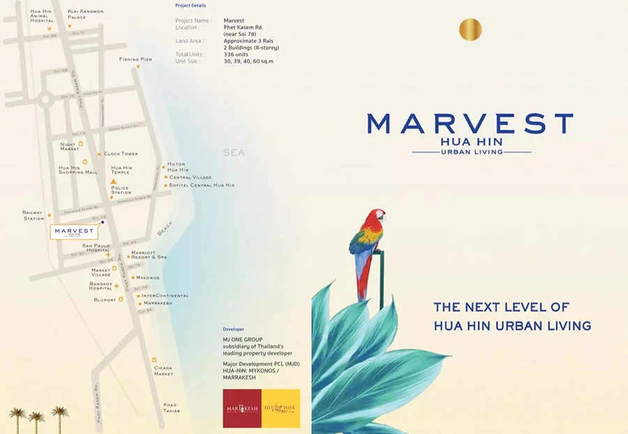 Marvest หัวหิน คอนโดตากอากาศสุดหรูที่ตกแต่งอย่างพิถีพิถันด้วยวัสดุคุณภาพ พรีเมียม ทำเลใจกลางเมืองหัวหิน มาพร้อมสระว่ายน้ำขนาดใหญ่ ที่จะทำให้สามารถดื่มด่ำไปกับบรรยากาศแห่งการพักผ่อน อีกทั้งยังใกล้ Lifestyle Hub แลนด์มาร์กยอดฮิตที่ครบครันในหัวหิน เป็นคอนโดอีกโครงการที่น่าสนใจไม่น้อยเลย