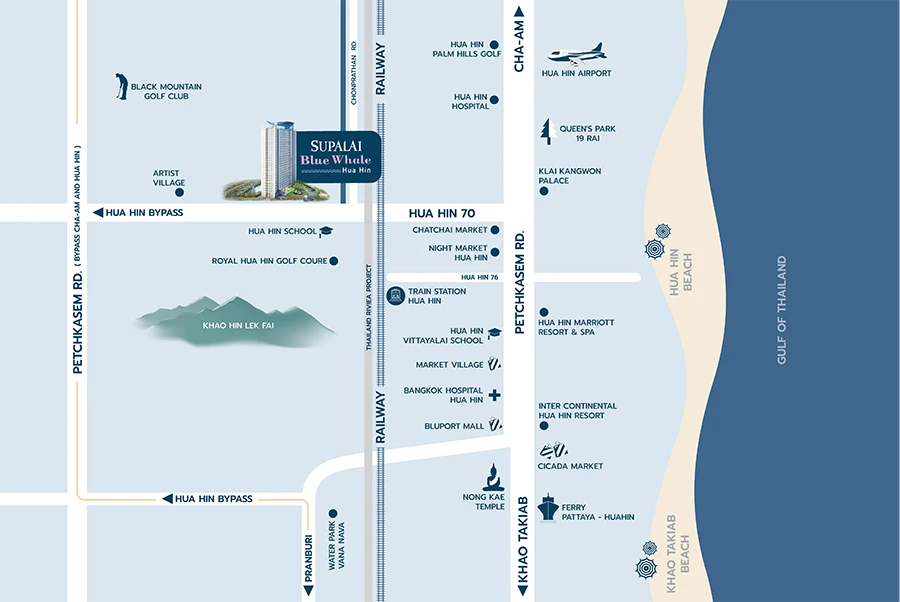 "ศุภาลัย บลูเวล หัวหิน" บนทำเลใจกลางหัวหิน สุด Exclusive ที่จะสามารถชมวิวได้รอบๆ ทั้งวิวทะเล วิวภูเขา พร้อมรับลมธรรมชาติ และให้ความเป็นส่วนตัวกับทุกการพักผ่อน ที่มาพร้อมกับส่วนกลางจัดเต็มด้วย Lighthouse Park หรือสวนน้ำ สไตล์ Adventure Kids และ สระว่ายน้ำขนาดใหญ่ อีกทั้งคอนโดยังอยู่ใกล้แหล่งสิ่งอำนวยความสะดวกใจกลางหัวหิน